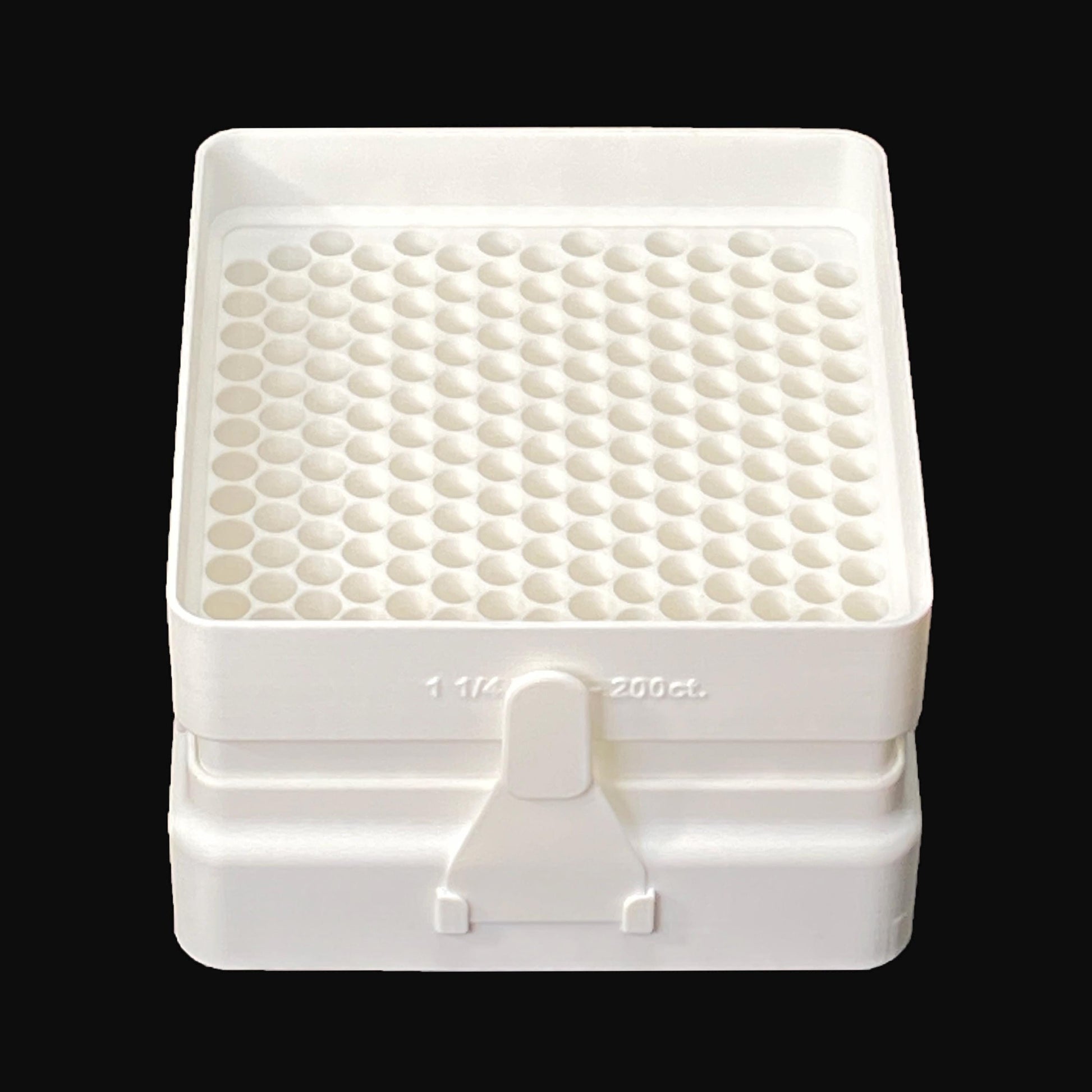 Fill 200 cones at once with The 200 Cone Filler Box. Save time and improve the quality of your pre-rolls! No more crumpled or crushed cones! Simply drop the cones in, cover with flower, and shake--if needed, spread the flower out evenly with the included spreader tool. Available in King, 1 ¼, 98mm Standard, Reefer Slim, and Lean, Dog Walker Mini, and 53mm Shorty sizes.
