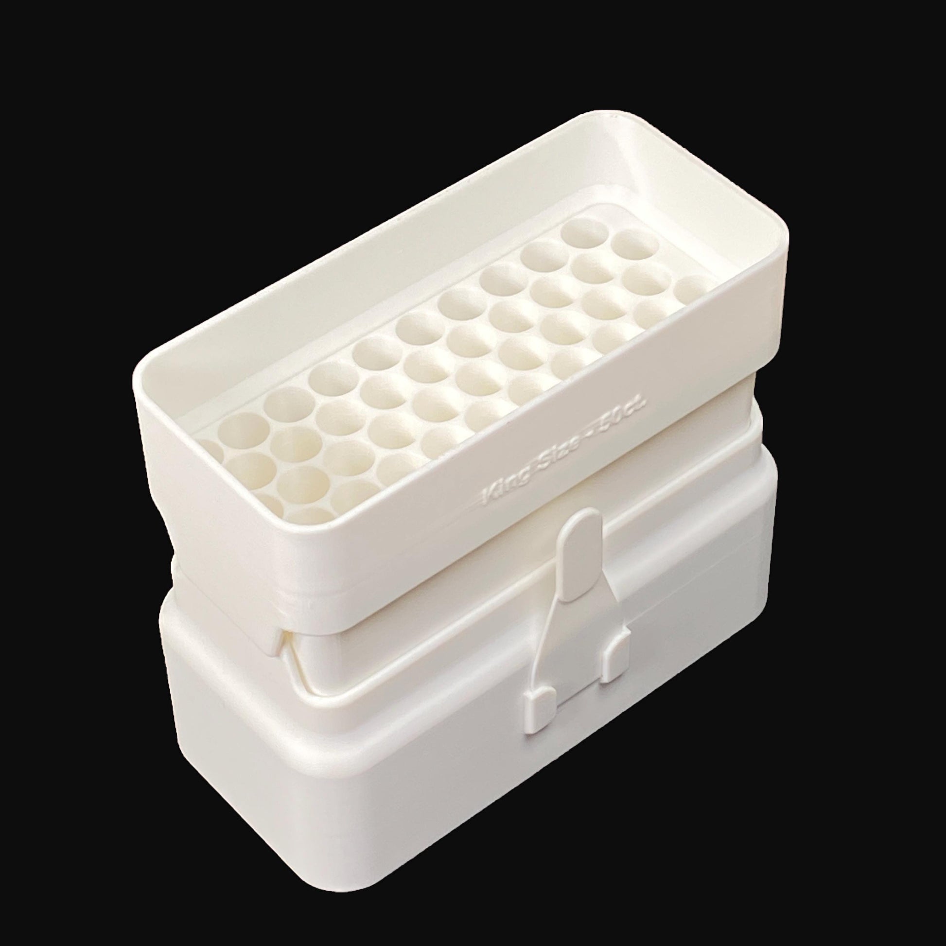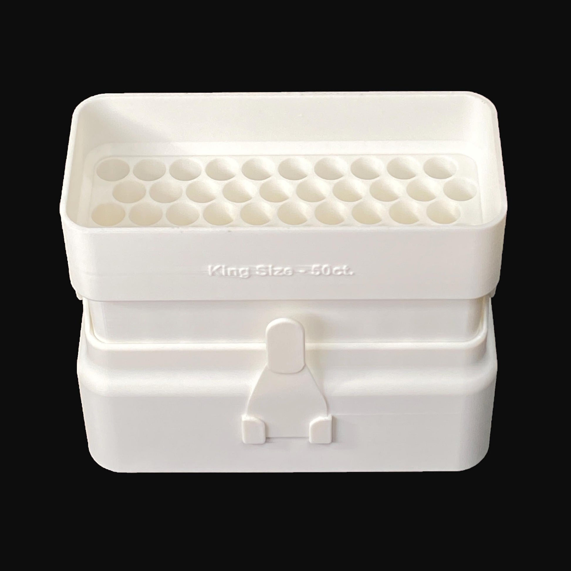 Fill 50 cones at once with The 50 Cone Filler. Save time and improve the quality of your pre-rolls--No more crumpled or crushed cones! Simply drop the cones in, cover with flower, and shake--if needed, spread the flower out evenly with the included spreader tool. Available in King, 1 ¼, 98mm Standard, Reefer Slim, and Lean, Dog Walker Mini, and 53mm Shorty sizes.